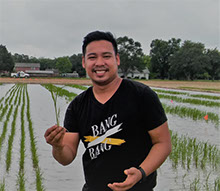 James Villegas is a Ph.D. student in the Stout lab and co-advised by Dr. Blake Wilson. He's investigating the role of plant tolerance as defense against the rice insect pest complex. His research involves a combination of field, greenhouse, and laboratory experiments. Ultimately, his goal is to develop alternative management tactics that can be incorporated into current crop production practices to improve management of insect and disease pests such as the rice water weevil and stem borers, including the invasive Mexican rice borer.