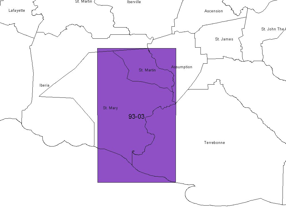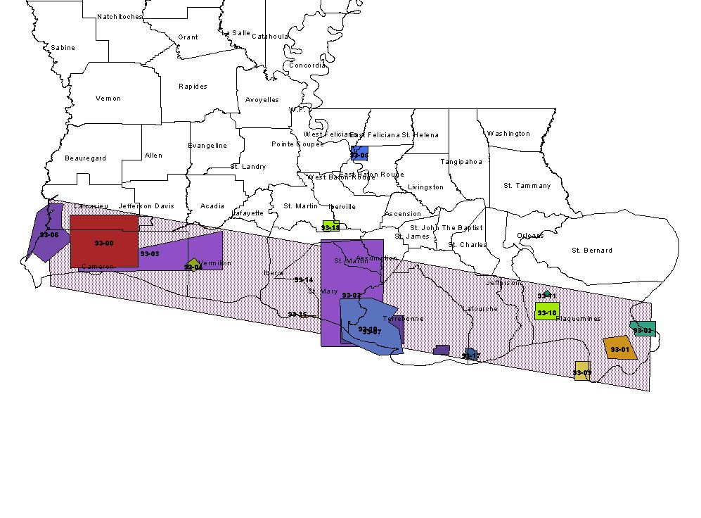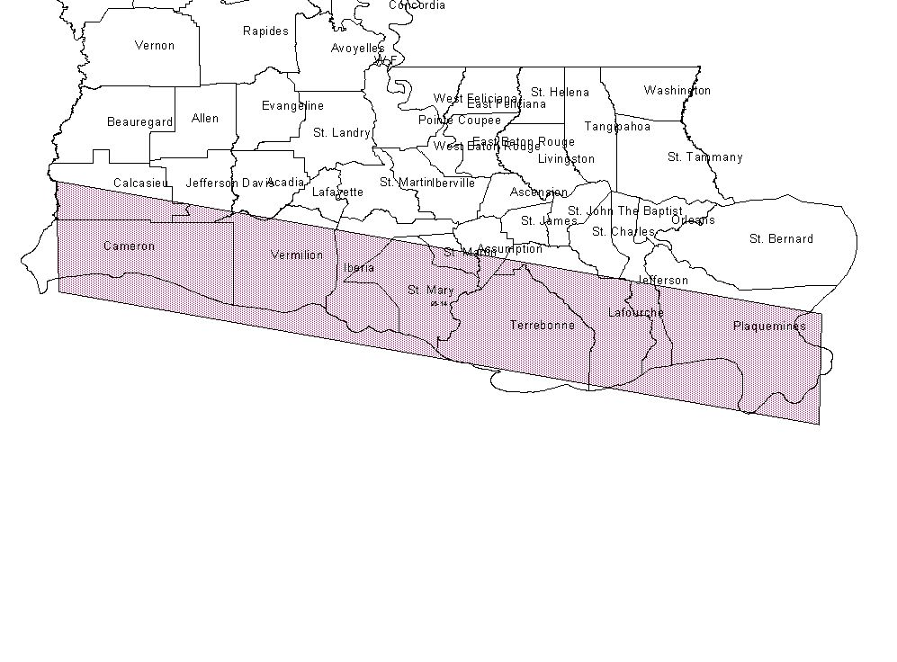 Vermilion, Cameron, St. Mary, Terrebonne |