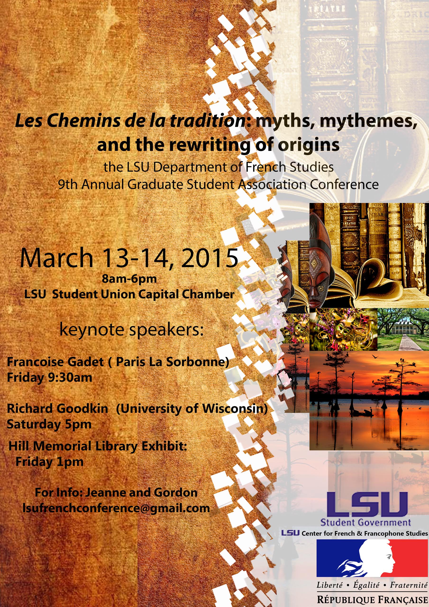 The Department of French Studies at LSU is excited to announce the 2025 Graduate Conference, an inspiring event designed to bring together emerging scholars from around the world to explore the richness and diversity of French studies, literature, culture and thought. This year's theme : COMMM(UNITIES): FROM UNIVERSALISM(S) AND OTHERNESS TO INCLUSION AND CONNECTIONS, invites participants to engage in meaningful discussions, share cutting-edge research, and foster connections across disciplines and borders. Click the link for detailed information on the conference schedule.